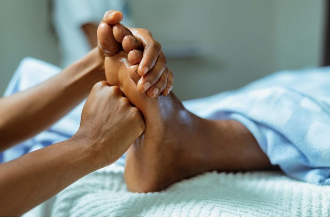 Thai massage Foot Massage is a relaxing treatment combining acupressure, stretching, and reflexology to stimulate energy lines (sen lines) in the feet and lower legs, promoting overall well-being. It uses hands, fingers, and a massage stick to apply pressure to specific points that correspond to different parts of the body, which is believed to improve circulation, reduce stress, and relieve pain. A session typically involves cleaning the feet, applying pressure and stretching the feet and lower legs.